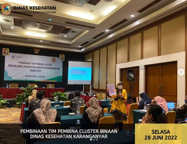 Rabu, 10 Agustus 2022 – Menjalankan amanah Permenkes No 44 Tahun 2016 tentang Pedoman Manajemen Puskesmas, Dinas Kesehatan bertempat di pendopo RM Mba Ning, Ngargoyoso melakukan pertemuan monitoring kinerja dan mutu Puskesmas sebagai upaya untuk mengetahui tingkat capaian kinerja dan mutu Puskesmas pada pertengahan tahun, dan melakukan perhatian terhadap program dengan capaian indikator kurang dari 50 persen. Dalam kesempatan ini, dilakukan juga evaluasi terhadap inovasi Puskesmas dan pemberian reward terhadap Puskesmas dengan inovasi terbaik 1, 2 dan 3. Terbaik 1 : Puskesmas Kebakkramat 1 dengan inovasi SI Demen TomatTerbaik 2 : Puskesmas Colomadu II dengan Markas Remaja Sehat, danTerbaik 3 : Puskesmas Colomadu 1 dengan Blogsite Edukasi Pojok Input HamilSelamat kepada para pemenang, semoga memberi inspirasi dan motivasi kepada Puskesmas lain. Narasumber :1. Kepala Dinas Kesehatan2. Kepala Bidang Pelayanan Kesehatan3. Subkor Yankes Mutu dan Pembiayaan Kesehatan