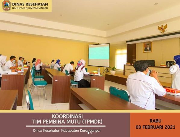 Rabu, 3 Februari 202 – Seksi Pelayanan Mutu dan Pembiayaan Kesehatan Dinas Kesehatan menyelenggarakan pertemuan koordinasi Tim Pembina Mutu (TPMDK) Dinas Kesehatan yang dihadiri oleh seluruh Kepala Bidang Dinas Kesehatan, Pendamping Akreditasi dan Surveyor Kesehatan.