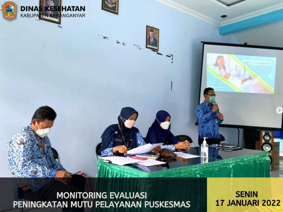 Sebagai upaya mempertahankan mutu pelayanan di Puskesmas, Dinas Kesehatan melakukan monitoring dan evaluasi ke beberapa Puskesmas di Karanganyar. Selain dalam upaya meningkatkan mutu layanan, kegiatan ini ditujukan untuk mendampingi Puskesmas dalam mempersiapkan re akreditasi.