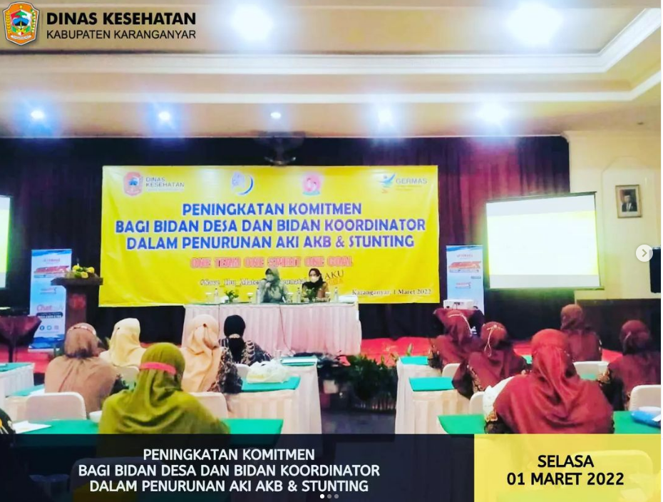 Dalam rangka percepatan penurunan AKI AKB dan prevalensi stunting di Kabupaten Karanganyar Tahun 2022, maka Dinas Kesehatan Kabupaten Karanganyar pada hari Selasa, 01 Maret 2022 bertempatan di Hotel Taman Sari menyelenggarakan pertemuan Peningkatan Komitmen bagi Bidan Koordinator dan Bidan Desa dengan Narasumber:
