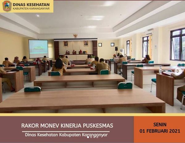 Senin, 01 Februari 2021- Dinas Kesehatan melalui Seksi Pelayanan Kesehatan Primer dan Kesehatan Tradisional melaksanakan rapat koordinasi monitoring kinerja Puskesmas yang dihadiri oleh semua Kepala Bidang dan semua Kepala Puskesmas di Kabupaten Karanganyar.